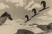 Mountain climbing as a topic and the increasing popularity of winter sports are typical for the 1930s. Pedrotti followed this evolution closely and documented it not only with a camera - many skiers in action ended up on negatives this way - but also with a film camera. The film Monologo sul sesto grado from 1953 can be seen in the exhibition in a last remaining b/w version in 35mm format, owned today by the Film Archive of the Club Alpino Italiano in Milan. In 1954, this film won the "Rododendro d'argento" at the "Film Festivaldella Montagna di Trento". This film was inspired by the films of Arnold Fanck and Luis Trenker from the twenties, which have become famous - bringing us once again to the history of European photography.